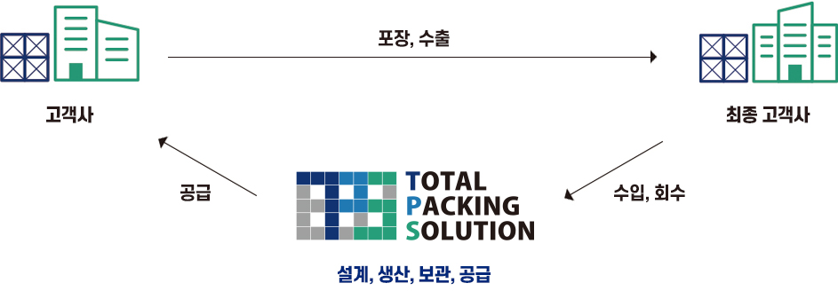 최초 납품 시 사용된 수송포장용기를 회수하여 재사용하는 순환적 물류 시스템.
